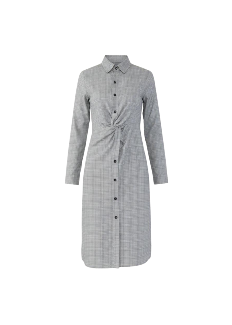 Checkered Button Down Shirt Dress With Twist Waist Detail