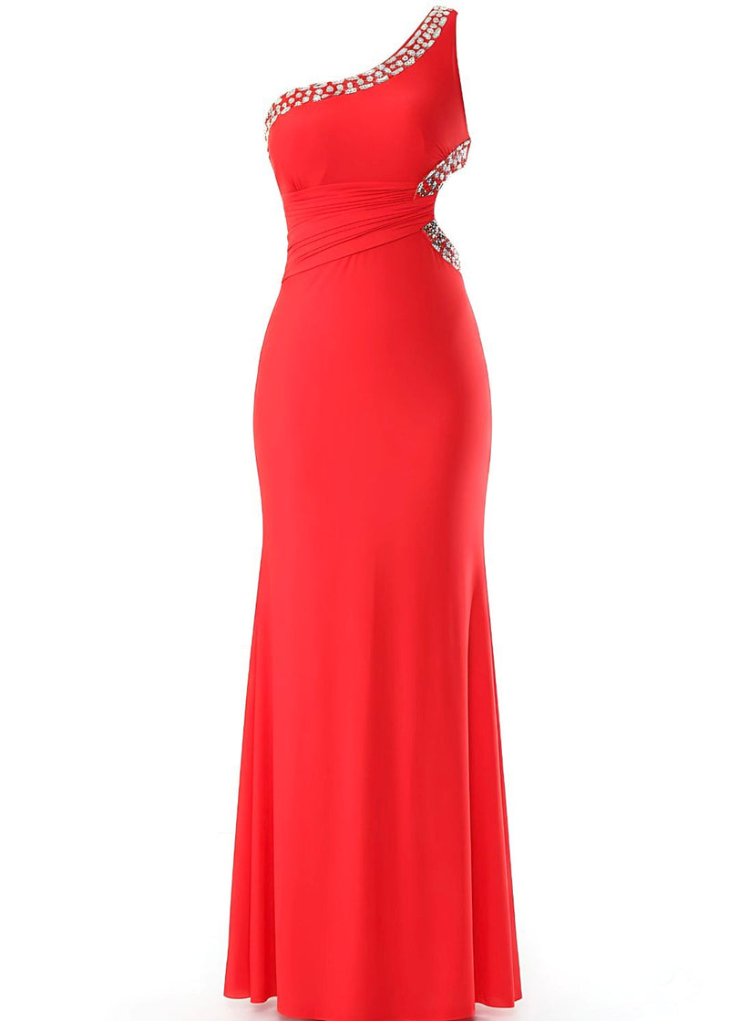 Fitted Formal Dress One Shoulder Embellished Maxi Gown