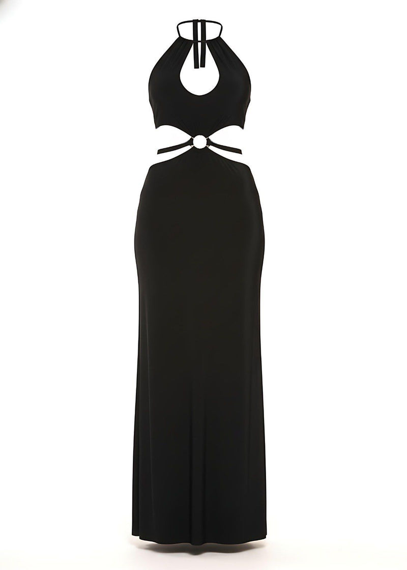 Front Keyhole Black Halter Maxi Dress With Cut-Out Waist